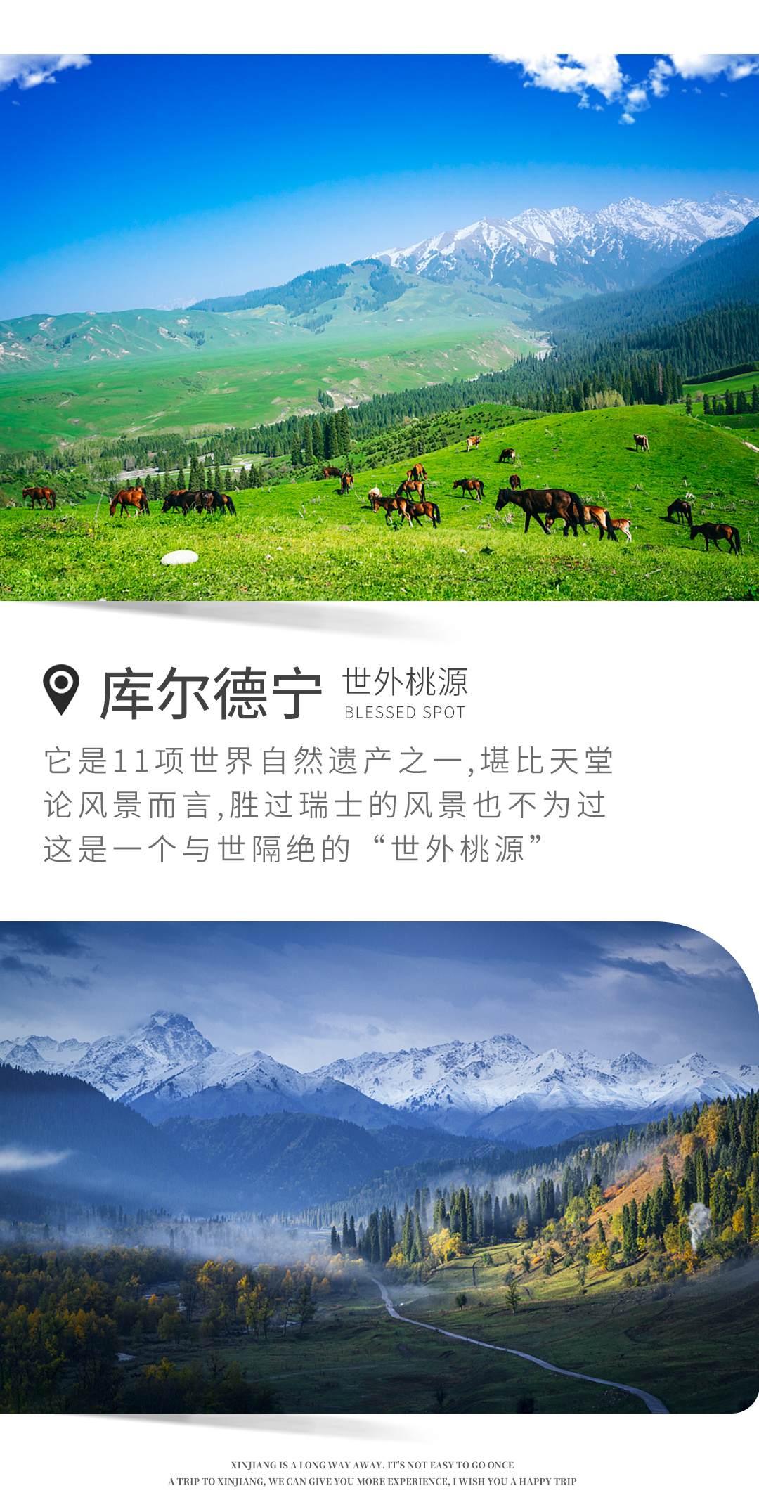 2.全程景点首道门票费用及区间车费用:(赛里木湖门票及区间车,库尔德宁门票及区间车,喀拉峻门票及区间车,恰西草原门票);