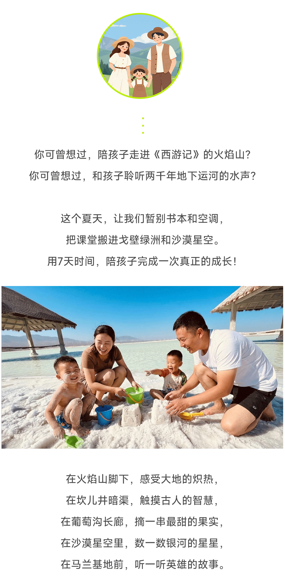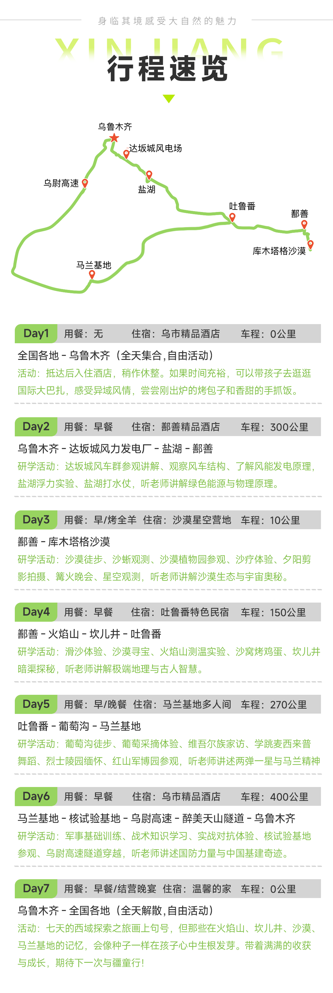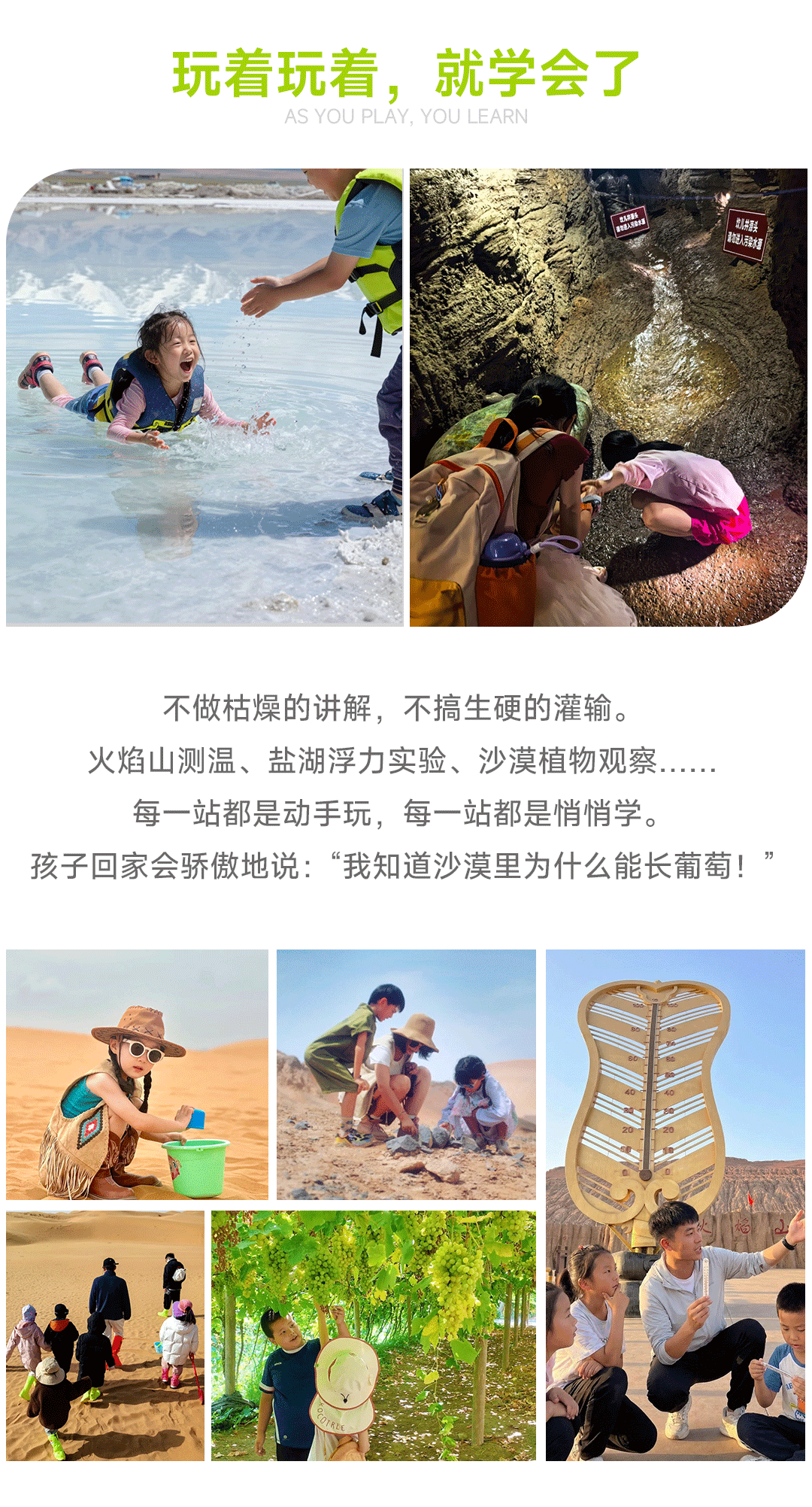 5.全程研学项目(风车发电基地/盐场参观,盐湖浮力实验,火焰山测温,葡萄晾晒,马兰基地项目)