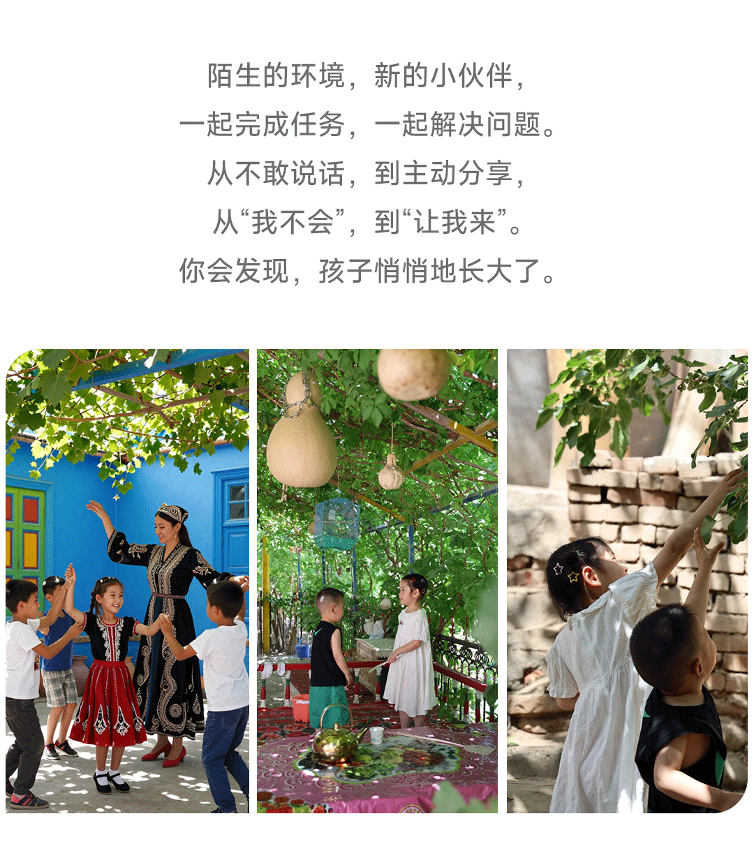 中午前往青蛙巷自由午餐,到当地小朋友家做客,学跳麦西来普舞蹈,品尝手抓饭,现烤馕饼。