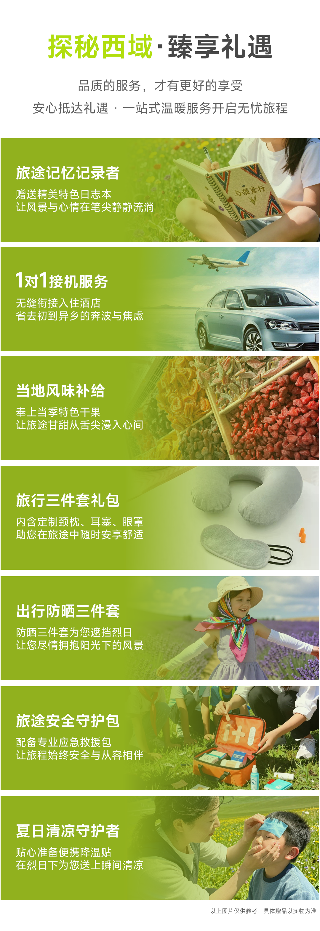 4.行程中的所有出发/抵达时间、行程中游览时间、抵达景点时间等仅供参考,可能会因为淡旺季客流量、路况情况、限速等存在一定的误差,敬请谅解!
