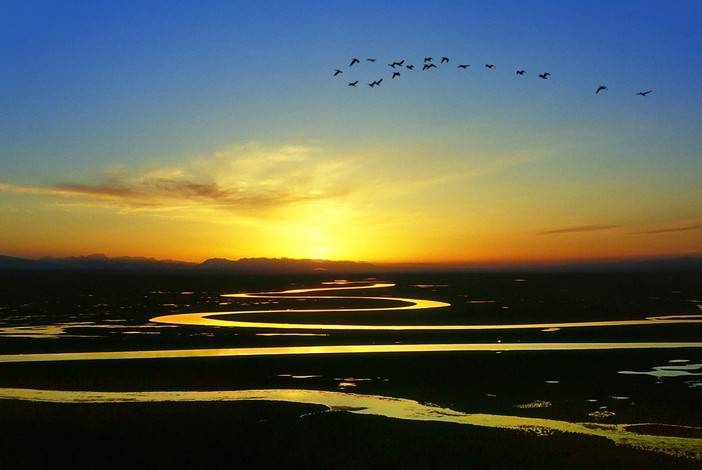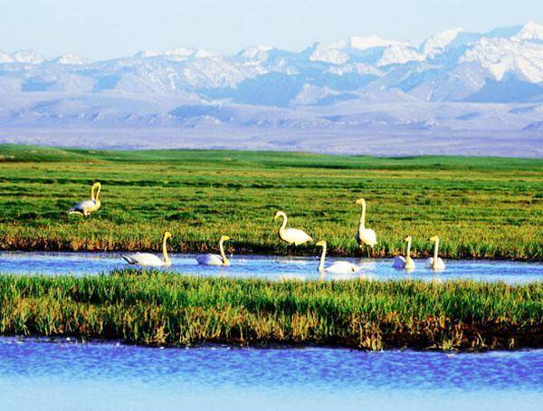 在这这里,我们可以和天鹅来一次亲密的接触,接着漫游在这片绿色的草原,深切的感受一下中国第二大草原的雄伟与壮阔。最后静静的等待巴音布鲁克的九曲十八湾的落日。最后一次体会什么叫做雄浑壮美,大气磅礴,约23:00我们返回小镇入住。