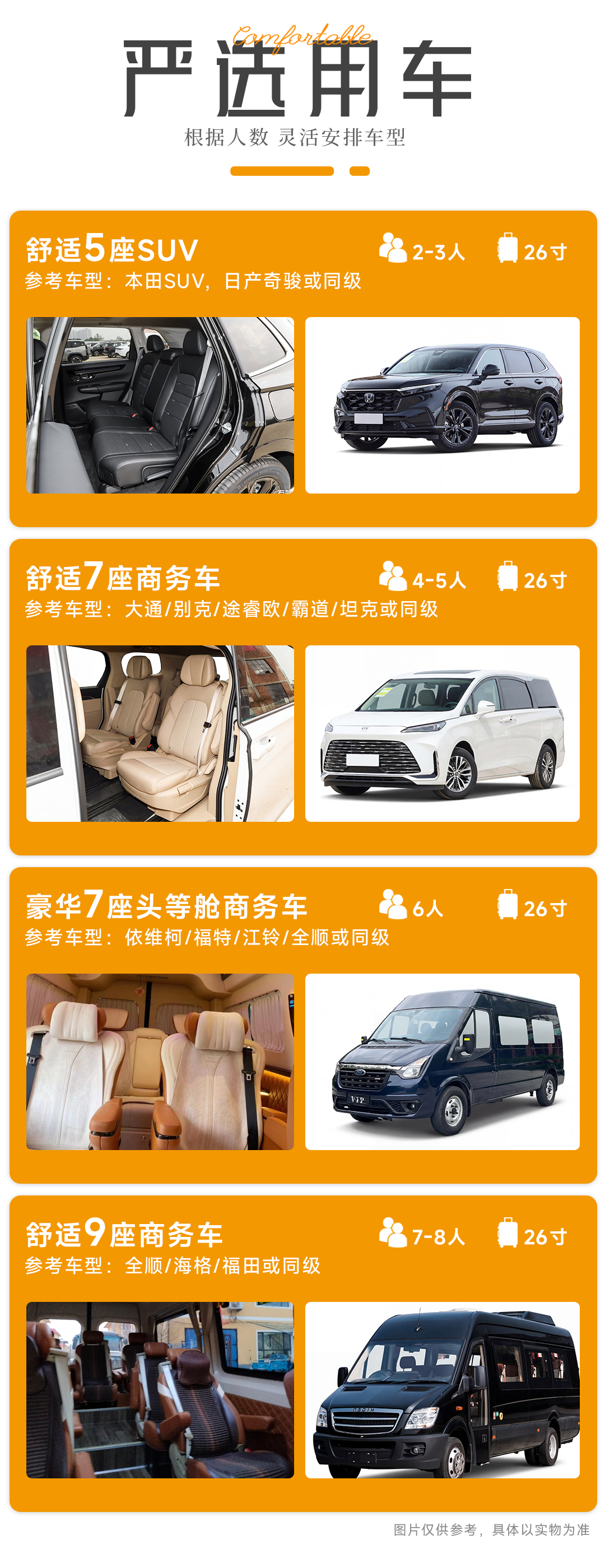 2-3人安排5座SUV(哈佛/奇骏/本田或同级)