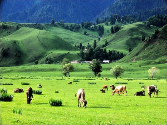 空中草原在那拉提山谷里的一个开阔地带,在半山腰上,雪山脚下就是草原。 每年6月之后,大群的牲畜转入,进入草原的黄金季节,草原人的各种集会多在此举行。自古以来就是著名的牧场。河谷、山峰、深峡、森林交相辉映。