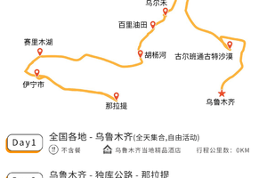 第一天:全国各地→乌鲁木齐(集合日,当天抵达即可)