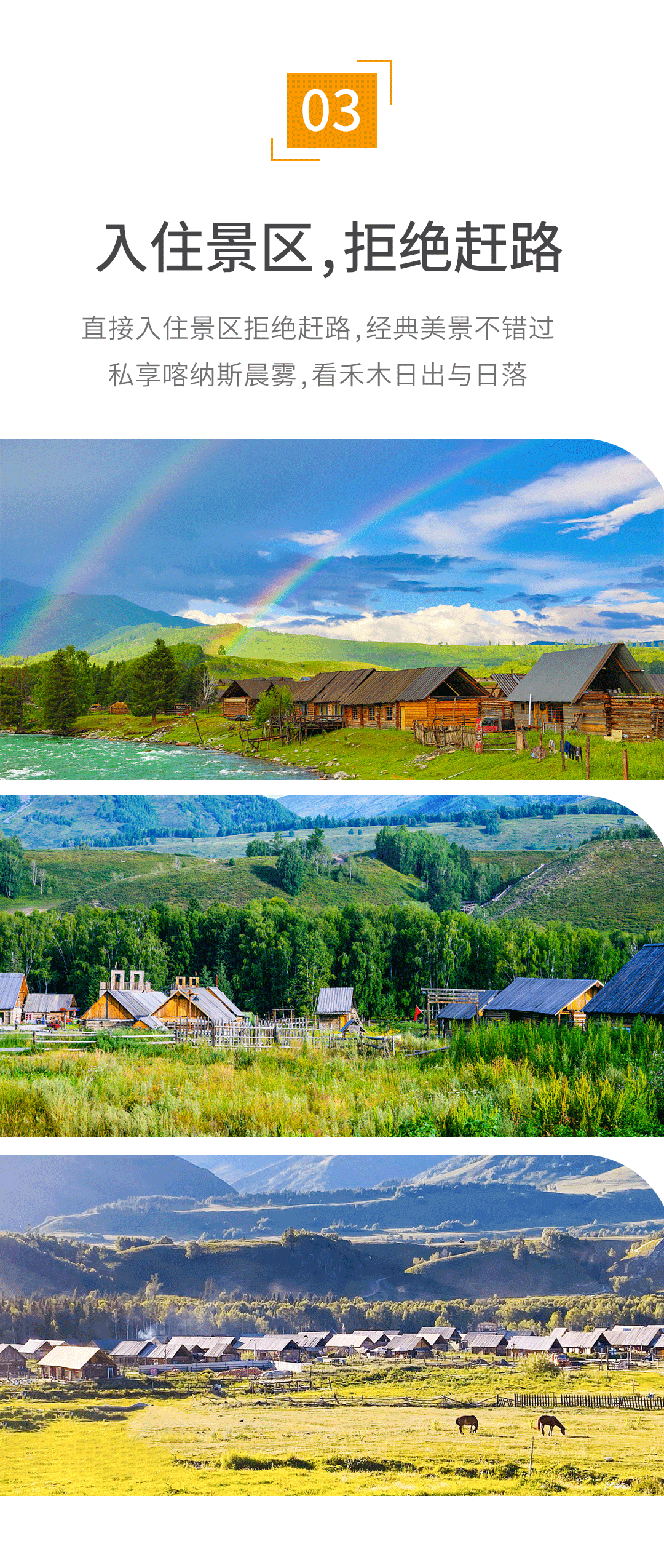 1. 为了保护当地环境,退耕还牧,国家针对喀纳斯展开了“绿箭行动”,拆除了当地大量的木屋客栈,只留下少数分供游客使用,相对也势必造成住宿费用“水涨船高”,但为了大家能够有更多的时间在喀纳斯及体验,我们依然坚持住在景区里。喀纳斯分新村和老村,各有优劣势,到时候我们也会根据团队情况安排,当地木屋客栈条件有限,也请小伙伴理解;