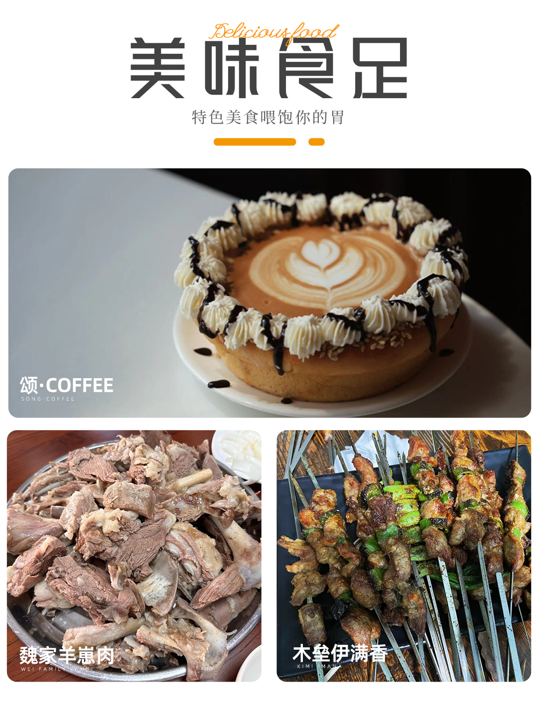 之后前往伊宁市,入住酒店后团大家可自行前往六星街、喀其赞民俗村,这里是一个蓝白小镇,身处这里会让你有一种身处国外的错觉。