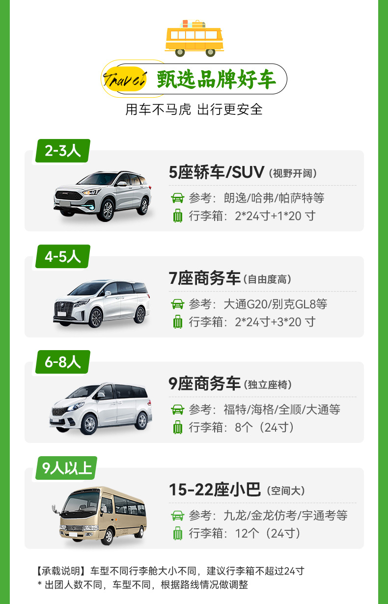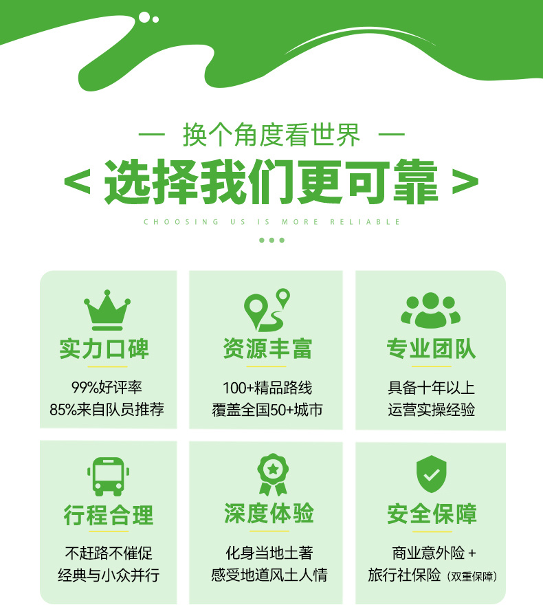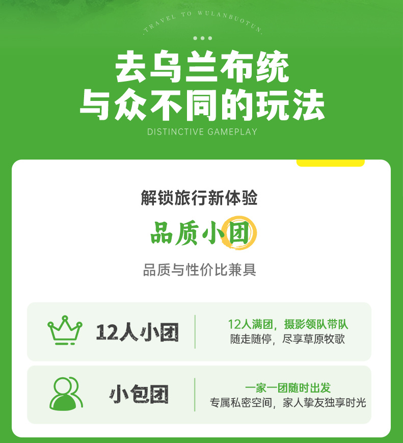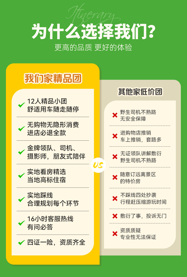 12人品质团:12人满团,5人及以内司机兼向导,6人及以上安排1名摄影领队;