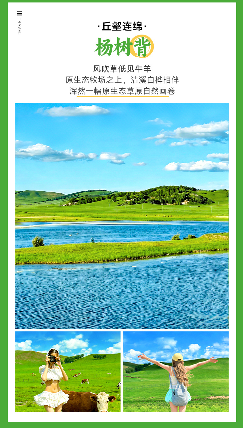 【杨树背】草原私藏的天然氧吧,挺拔的白桦林与茵茵绿草交织成画,越野车穿梭林间,颠簸又刺激;林间小松鼠灵动出没,为旅途添上几分萌趣。