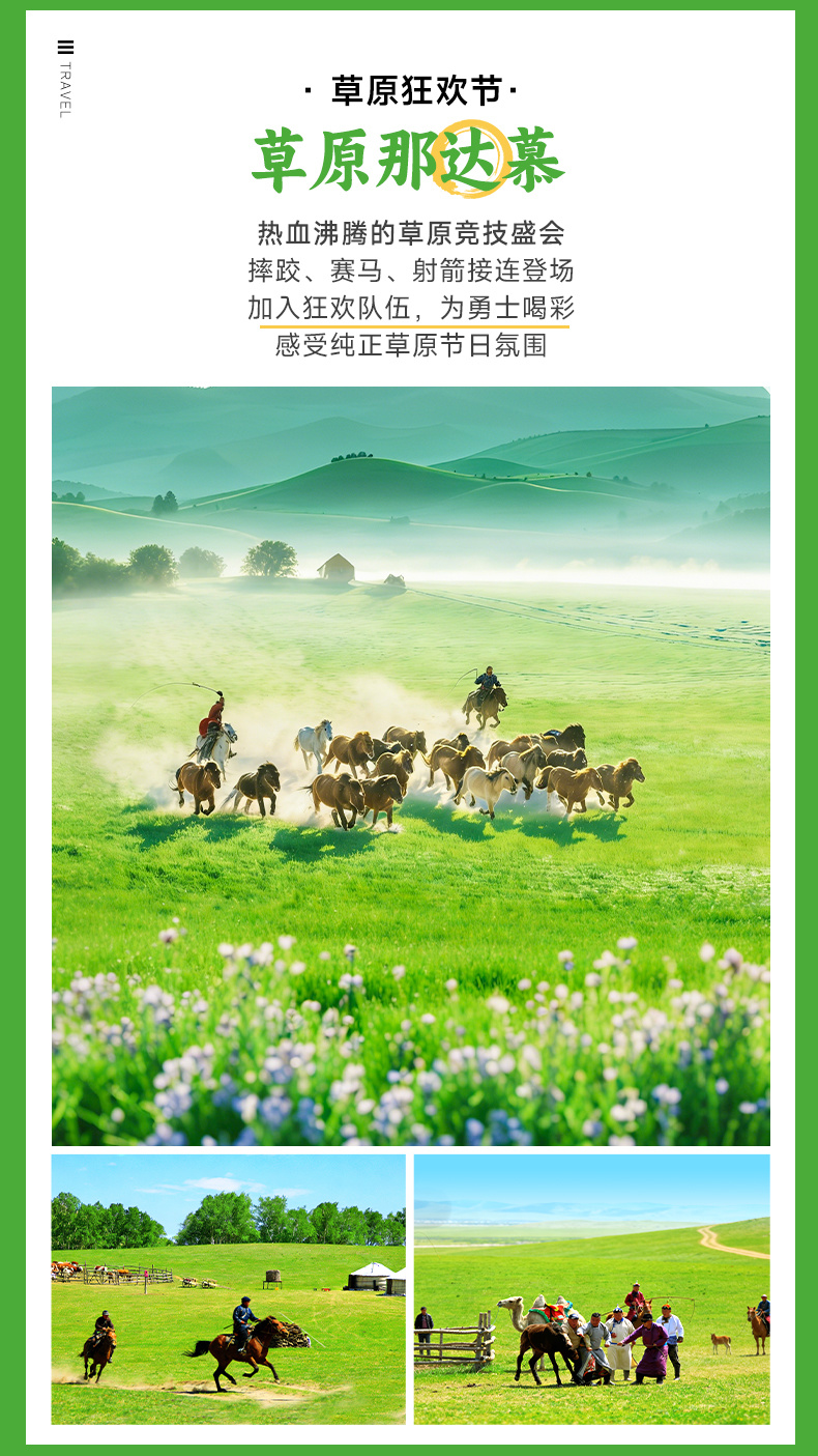 甘丹驼城草原那达慕的体验内容,可能根据季节和天气进行微调,具体以园区安排为准。